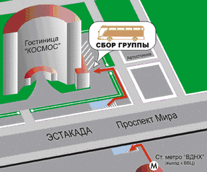 07:00 Сбор группы в Москве: ст. метро «ВДНХ», стоянка справа от гостиницы "Космос". Точное место, время сбора и контактный телефон гида/координатора необходимо уточнять за 1 день до начала тура на сайте в разделе "Выезд/прибытие".
